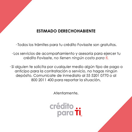 Recuerda todos los trámites de tu crédito Fovissste son totalmente gratuitos.